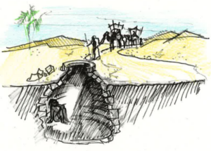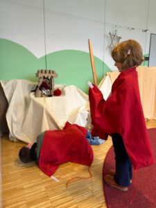 Jesus wird am Ziel in Bethlehem geboren und doch ganz vorbei am Ziel seiner Eltern: nicht in einer sicheren Herberge in Wärme und Licht sondern genau daneben in einem Stall. Und doch ist es auch dort warm durch die vielen Tiere in der Karawanserei, es findet sich Heu und Stroh für ein weiches Bett und eine Krippe für das Kind. Später kommen noch Hirten vorbei – ob ausgerechnet diese Ärmsten die weichsten und wärmsten Geschenke bringen? Ein Lammfell und warme Milch?