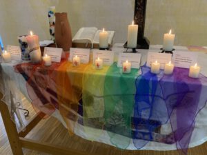 Im Kindergottesdienst ging es um den Heiligen Geist, der an Pfingsten Jesu Jüngern und Jüngerinnen Mut, Kraft und Freude wiedergegeben hat. Mit einem Brausen hat er sich angekündigt, wie mit kleinen Flammen ist der Funke übergesprungen, der kleine Freundeskreis Jesu war begeistert: Jetzt endlich haben sie sich wieder hinaus getraut! Sind einfach auf die Straße gelaufen und haben den Menschen in Jerusalem die frohe Botschaft Gottes erzählt! Und viele Leute haben sie verstanden und begriffen: Alle, die sich taufen lassen, werden Kinder Gottes. So ist an diesem Tag in Jerusalem die erste christliche Gemeinde entstanden und seitdem wird an Pfingsten der Geburtstag der Kirche gefeiert: dazu haben wir im Kindergottesdienst einen Strauß aus Luftballons gebunden und geschaut und gehört, wie mit Luftballons, Tüten, Papierschleifen, Flöten und dem Kehrvers: „Atme in uns, Heiliger Geist …“ der Atem Gottes und das Brausen des Heiligen Geistes damals wohl geklungen hat. GA