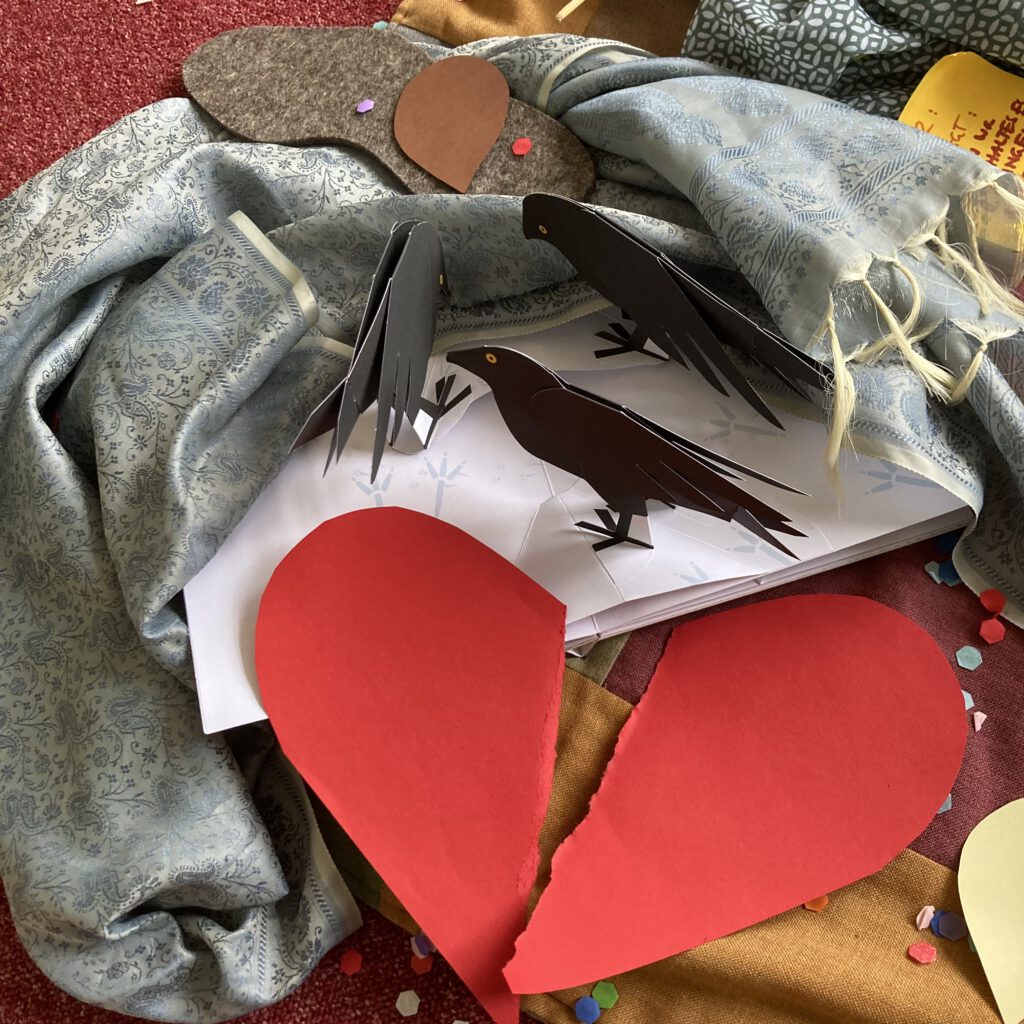 Jesus wird am Ziel in Bethlehem geboren und doch ganz vorbei am Ziel seiner Eltern: nicht in einer sicheren Herberge in Wärme und Licht sondern genau daneben in einem Stall. Und doch ist es auch dort warm durch die vielen Tiere in der Karawanserei, es findet sich Heu und Stroh für ein weiches Bett und eine Krippe für das Kind. Später kommen noch Hirten vorbei – ob ausgerechnet diese Ärmsten die weichsten und wärmsten Geschenke bringen? Ein Lammfell und warme Milch?